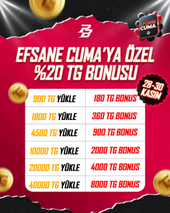 Etkinlik süresince yükleme yapan oyuncular, yatırdıkları TG’nin %20’sini bonus olarak geri alacak. Daha fazla TG, daha fazla aksiyon demek!